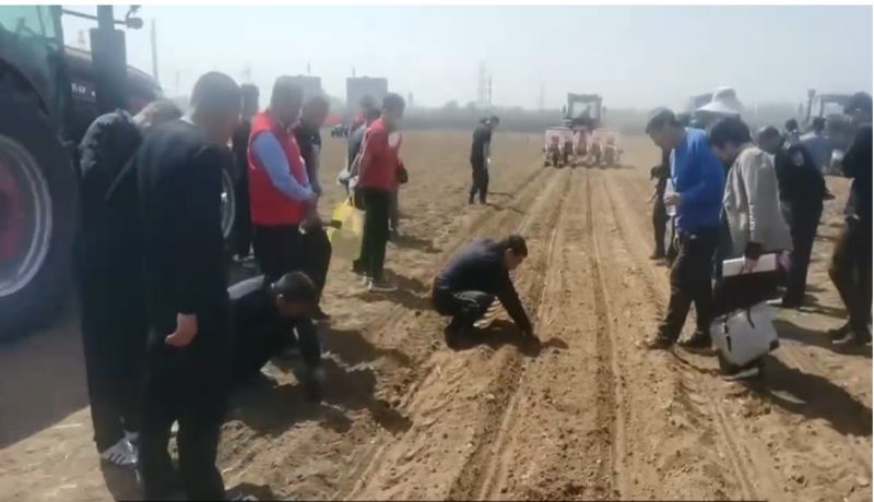 2024年4月12日,我廠生產(chǎn)的2BMYFS-6型氣吸式高性能玉米單粒精量播種機(jī)參加了濟(jì)南市農(nóng)業(yè)機(jī)械技術(shù)推廣站組織的在章丘龍山鎮(zhèn)召開(kāi)的“濟(jì)南市高性能精播精作機(jī)械作業(yè)演示現(xiàn)場(chǎng)會(huì)暨農(nóng)機(jī)地頭展”。企業(yè)李文華銷售經(jīng)理介紹了產(chǎn)品機(jī)構(gòu)、性能特點(diǎn)和使用注意事項(xiàng),并進(jìn)行了現(xiàn)場(chǎng)演示。2BMYFS-6型氣吸式高性能玉米單粒精量播種機(jī)采用進(jìn)口風(fēng)機(jī)和排種器,風(fēng)力穩(wěn)定可靠,確保不漏種;進(jìn)口排種器采用兩面清種,確保單粒排種;并且產(chǎn)品已獲得農(nóng)業(yè)機(jī)械鑒定證書,購(gòu)買可享受國(guó)家農(nóng)機(jī)購(gòu)置補(bǔ)貼。